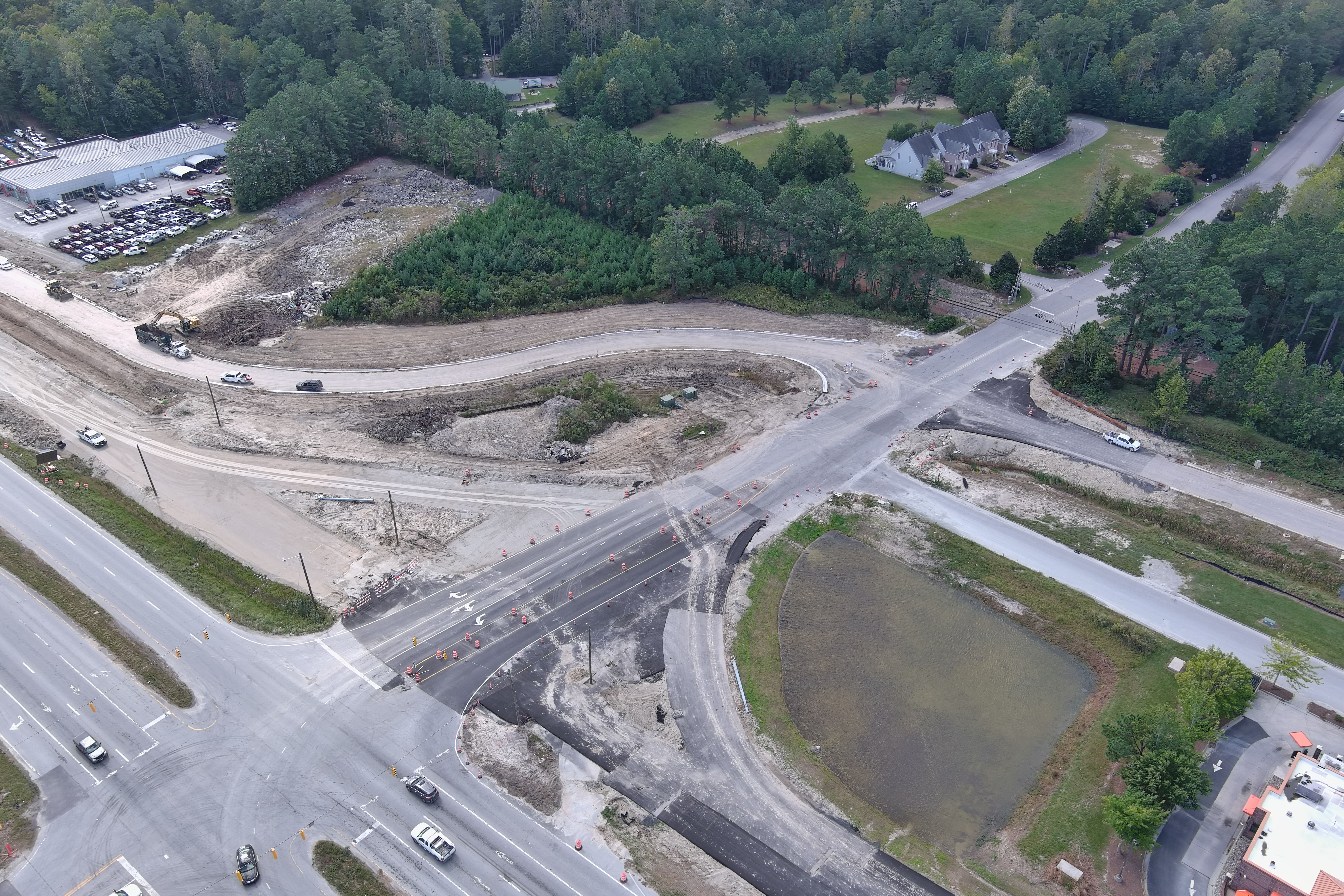 Intersections along U.S. 70 in James City are being converted to interchanges without traffic signals, improving traffic flow and reducing travel times. The Taberna Way interchange will allow for fluid cross street traffic under the highway, with roundabouts on both sides to manage the flow of traffic. Bridge construction marks the final stage of construction before the interchange is complete.