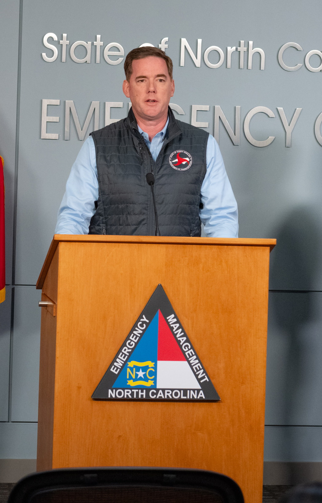 N.C. Department of Transportation Secretary Daniel Johnson speaks during a press conference at the state's Emergency Operations Center on Friday.