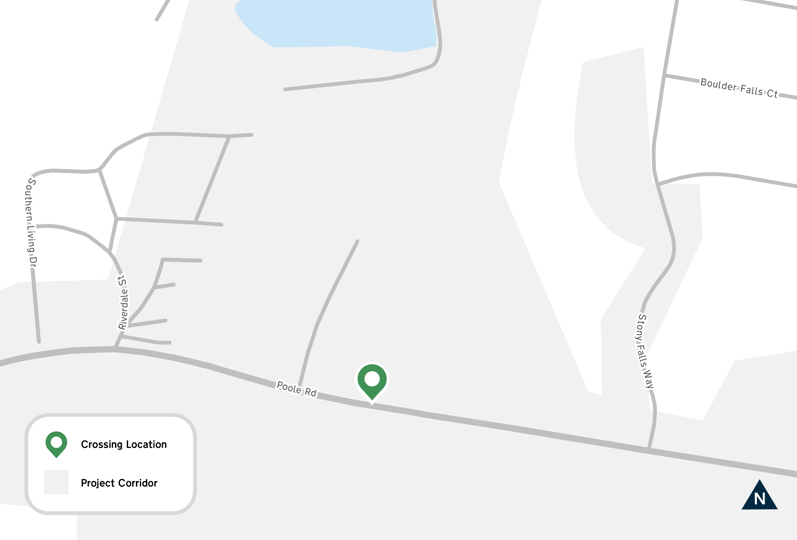 On February 10, crews started conducting nighttime earthwork hauling operations across Poole Road. From 7 p.m. to 6 a.m. each night, flaggers have been and will continue to direct traffic on Poole Road between Stony Falls Way and Riverdale Street to allow trucks to safely cross Poole Road.